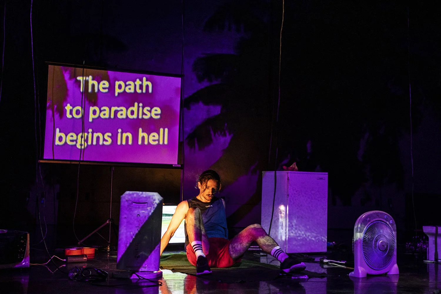 In their dance-theatre performance While Spotify is Creating a Custom Playlist Called Moodymix, Filip Štepec and Jernej Potočan, students of drama and theatre directing at AGRFT, are addressing a time when the Google browser knows our inner world best. As their starting point, they take an unreflected everyday life, an escape between four walls and hidden fantasies, which are paradoxically mirrored in our browsers, mixtapes, emails, call logs and search histories. The show does not communicate through technology, but chooses objects that we all have in common, that are part of our everyday life, whilst technology appears only as a commentary, as a set of songs that we dance to day after day.